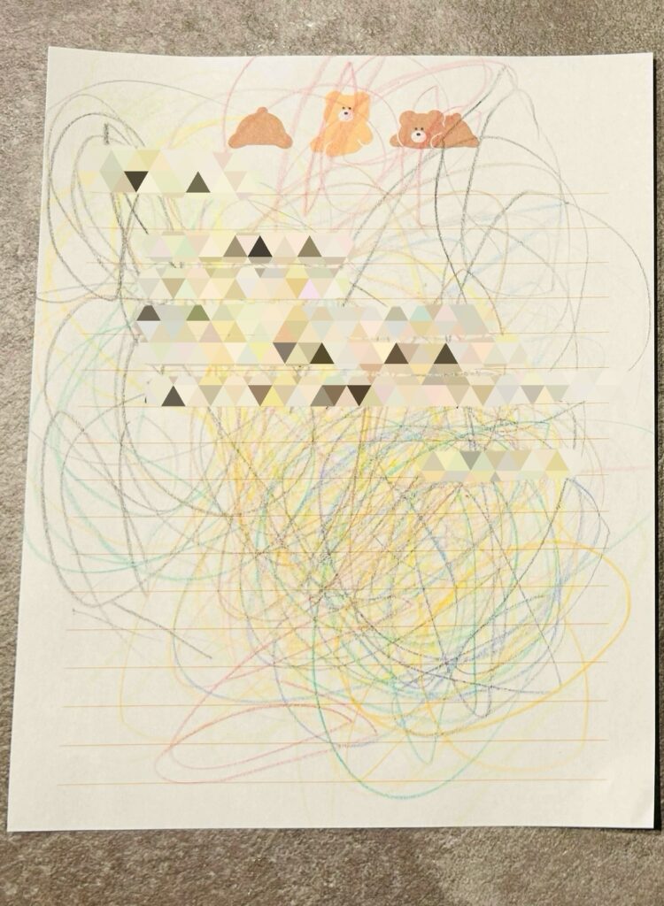 うちの子はまだ文字が書けないので、私が代筆して、子どもはぐるぐるお絵描きをしました。